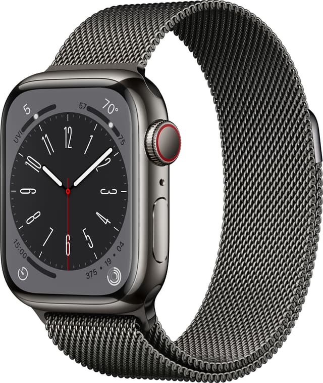 • Apple Watch Series 8 41mm Cellular (rustfritt stål i grafitt / grafitt milanese-reim)