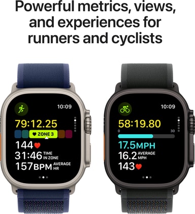 Apple Watch Ultra 2 kombinert med nyeste Alpine Loop eller Trail Loop er karbonnøytral. Les mer om Apples miljøengasjement på apple.com/2030·(4)