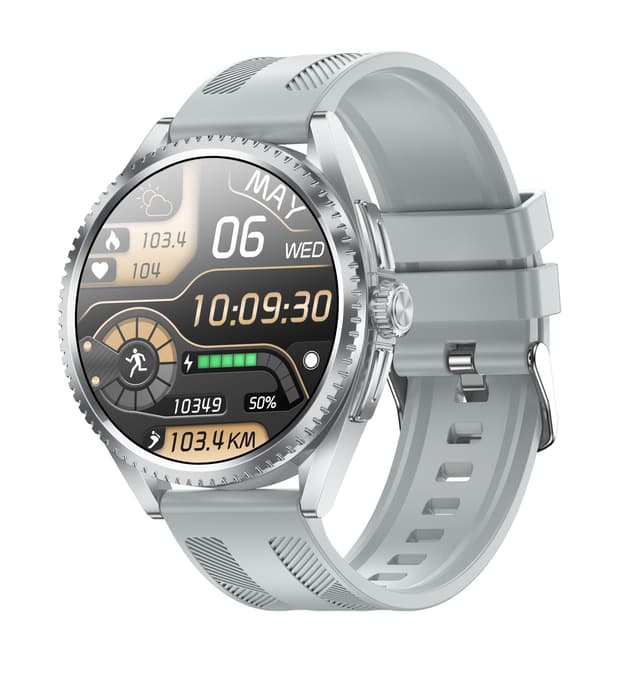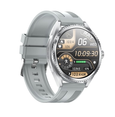 Elegant design: Smartwatch CF52 har et slankt og sofistikert design med en sølvfarget rem i rustfritt stål, noe som gjør den til det perfekte tilbehøret for både hverdagslige og formelle anledninger. De førsteklasses materialene og den omhyggelige utførelsen utstråler en aura av eleganse og stil.