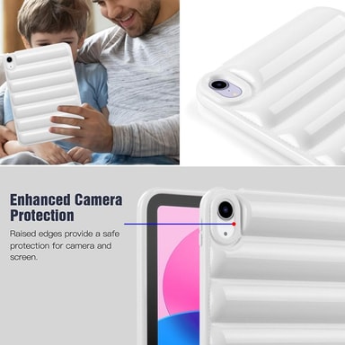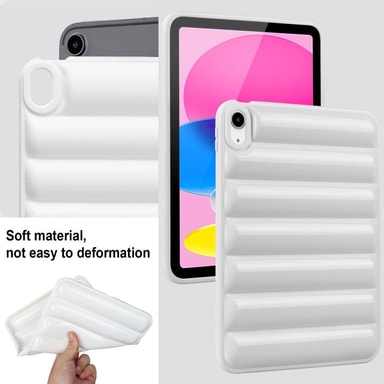 For iPad 10.9 (2022) Candy Color Shockproof Case Down Jacket Design Anti-ripe TPU-deksel - Hvit Laget av førsteklasses termoplastisk materiale, fleksibel og slitesterk å bruke Dunjakkedesign gir ekstra støtdemping og beskytter enheten mot riper, støv og flekker Presise utskjæringer, full tilgang til alle knapper, porter og andre sensorer og kontroller Hevd leppe for optimal beskyttelse av kameralinsen Det slitesterke dekselet ser veldig pent ut, og gir enheten et elegant utseende Superenkelt å installer/fjern Kompatibel med: