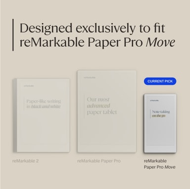 reMarkable Paper Pro Move Polymer Weave Book Folio sørger for at din reMarkable Paper Pro Move er beskyttet på stilfullt vis samtidig som den forbedrer arbeidsflyten din. Dekselet festes magnetisk til enheten og har plass på siden til din reMarkable Marker.