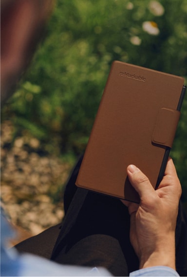 De innebygde magnetene holder reMarkable Paper Pro Move sikkert på plass. Magnetene er sterke nok til å holde enheten, men gjør det samtidig enkelt å ta den ut når du trenger det, noe som gir både sikkerhet og brukervennlighet.
