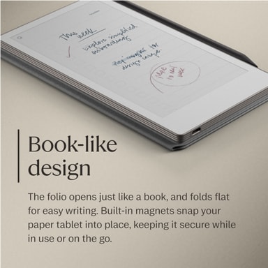 reMarkable Paper Pro Move Polymer Weave Book Folio beskytter ditt Paper-nettbrett på trygt og stilrent vis. Omslaget av vevd polymer festes magnetisk til enheten din, og tilbyr en vekke/dvale-funksjon og pennoppbevaring.Les mer om produktet