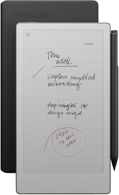 reMarkable Paper Pro Move Premium Leather Book Folio beskytter ditt Paper-nettbrett på trygt og stilrent vis. Omslaget av skinn festes magnetisk til enheten din, og tilbyr en vekke/dvale-funksjon og pennoppbevaring.Les mer om produktet