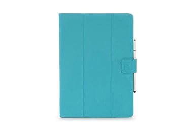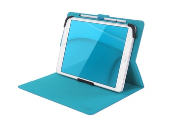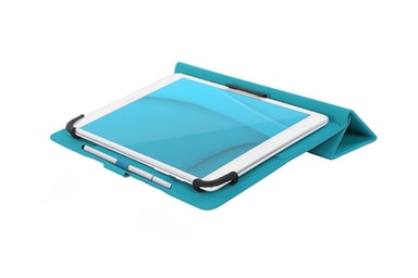Universelt etui for nettbrett på opptil 11 tommer med magnetisk lukking og internt stativ, laget av mykt og økologisk skinn som er behagelig å ta på. Interiør med tre silikonhjørner, én fast og to som kan tilpasses størrelsen på nettbrettet.