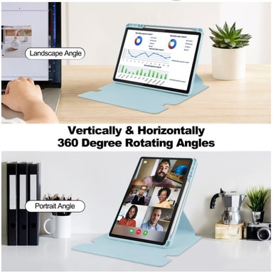 Allsidig visningsvinkel: Opplev enestående fleksibilitet med det 360° roterende stativet, som lar deg enkelt bytte mellom liggende og stående modus. Denne funksjonen er perfekt for videokonferanser, presentasjoner eller bare surfing på nettet. Den robuste hengselen sikrer stabilitet i alle vinkler, og gir en komfortabel seeropplevelse. Rotasjonsmekanismen er konstruert for jevne overganger og langvarig pålitelighet, noe som gjør den til en ideell følgesvenn for både arbeid og fritid. Nyt friheten til å justere nettbrettet til den perfekte visningsvinkelen, og forbedre produktiviteten og underholdningen.