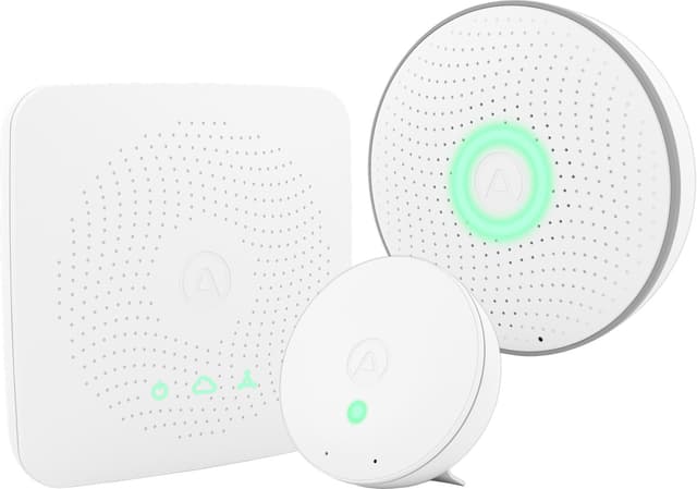 Dette settet inneholder alt du trenger for å sikre best mulig luftkvalitet i rommet: en Wave som registrerer radon, Wave Mini som måler luftfuktigheten, temperatur, mugg og kjemikalier, og en hub som gjør ar sensorene kan kommunisere med hverandre og smarttelefonen din i Airthings Wave-appen.
