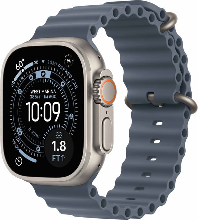 • Apple Watch Ultra 3 49mm (Natural Titanium/Anchor Blue Ocean Band)