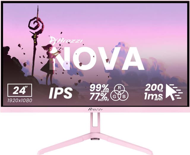 Arozzi Nova FHD | IPS | 200 Hz | 24" gamingskjerm har 1 ms responsfrekvens, 200 Hz oppdateringsfrekvens, og støtter Adaptive Sync. Den er laget for både spill og arbeid.Les mer om produktet
