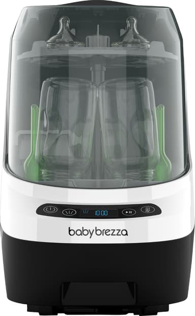 Baby Brezza Bottle Washer Pro rengjør, steriliserer, og tørker opptil fire flasker med ett knappetrykk. Den bruker 20 jetstråler for å fjerne rester, og HEPA-filtrering for tørking.Les mer om produktet
