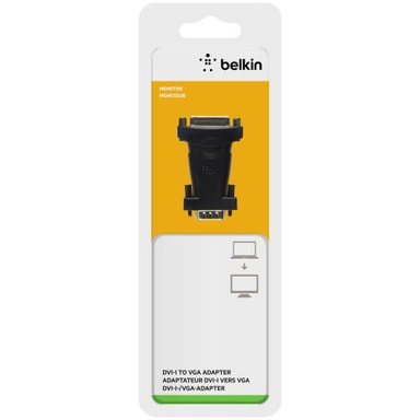 Med denne hendige Belkin DVI til VGA-adapteren kan du konvertere videosignaler fra din bærbare eller stasjonære PC med VGA-port til din skjerm eller projektor med DVI-kabel. Adapteren har VGA hannplugg og DVI hunnkontakt.
