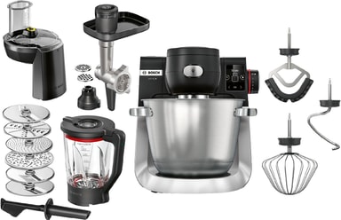 Kjøkkenmaskinen kommer med et komplett patisserie-sett, en kontinuerlig kutter, kjøttkvern og blender - klar for alle slags oppskrifter.