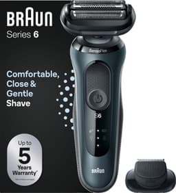 Opplev jevn og komfortabel barbering med Braun Series 6 barbermaskin 61-N1200s, utstyrt med et dreibart SensoFlex-hode og SensoFoil-blader som er skånsomme mot huden. Den kommer ellers med et EasyClick-trimmerfeste og gir 50-minutters barberingstid.Les mer om produktet