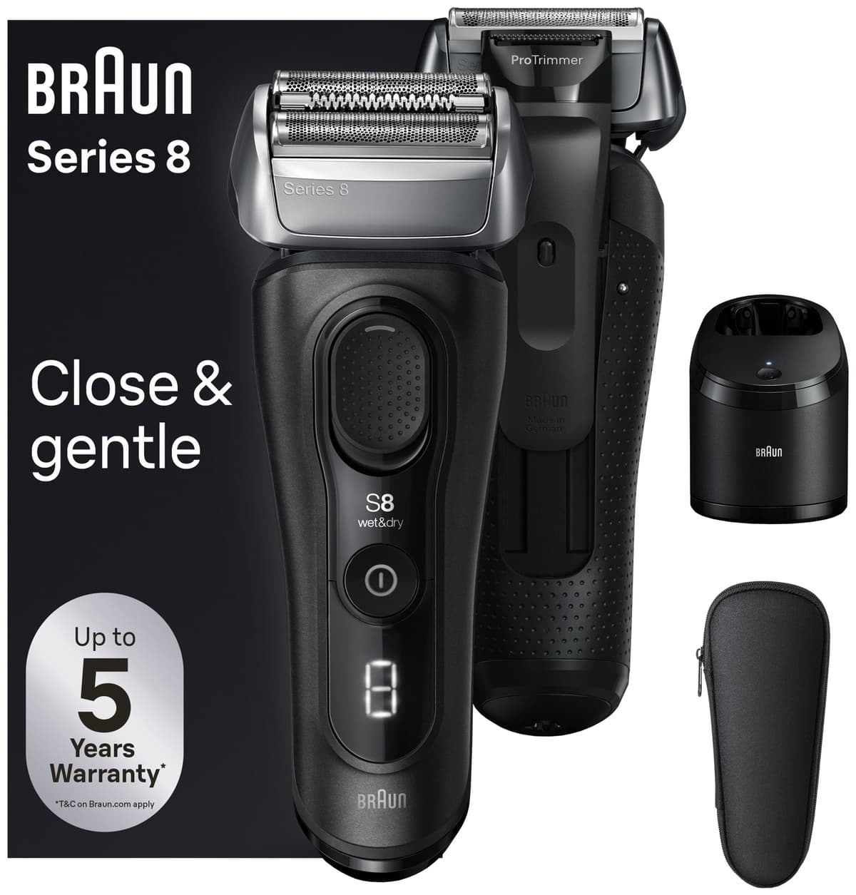 Braun Series 8 barbermaskin 8560cc er praktisk og alltid i stand til å gi deg en tett og ren barbering uansett hvor tett ansiktshår du har. Den har fire soniske barberingselementer, 40° svingbart hode og 60 minutters batteritid.Les mer om produktet