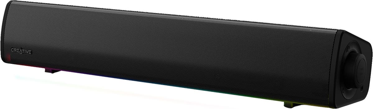 Creative Sound Blaster GS3 lydplanke leverer oppslukende lyd med SuperWide-teknologi, 24 W toppeffekt og levende RGB-belysning, med USB-C, AUX-inngang, Bluetooth 5.4 og en kompakt design som passer perfekt til ethvert PC-oppsett.Les mer om produktet