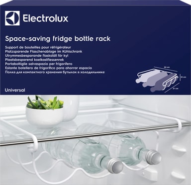 Denne praktiske flaskehyllen fra Electrolux gir praktisk oppbevaring av flasker og vil passe inn i alle kjøleskap. Har plass til 3 flasker.