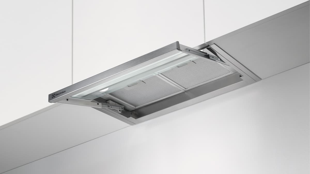 Unik, helintegrert, uttrekksventilator med diskret utseende og for perfekt tilpasning i ditt kjøkkenmiljø. Enkel betjening med trykk-knapper og 3 hastigheter. God kapasitet og effektiv belysning med 2 LED.Les mer om produktet