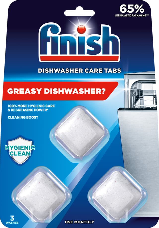 Finish rensetabletter (3 stk.) 3075545 løser effektivt opp fett og skitt i oppvaskmaskinen, inkludert i filteret og spylearmen. Bruk en tablett en gang i måneden samtidig som du skal vaske opp for å spare vann. Virker best med "All in One"-tabletter.Les mer om produktet