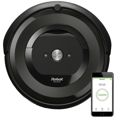 Robotstøvsugeren iRobot Roomba e5158 er kraftigere enn noensinne, med oppladbart litiumionbatteri, WiFi-tilkobling og app-styrt rengjøringsplan.