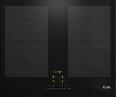 Induksjonstoppen er 62 cm bred og utstyrt med fire matlagingssoner, hver med sin egen booster og timer. Takket være de to PowerFlex-sonene, får du plass til større kjeler og panner. Hele induksjonstoppen kan enkelt styres med ComfortSelect-panelet eller appen Miele@mobile.