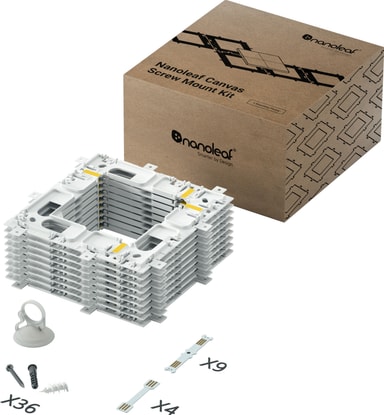 La kreativiteten flyte fritt med dette Nanoleaf Canvas monteringssettet, som er laget for Nanoleaf Canvas lysfirkanter (9 deler). Med det nye snap-systemet kan du skape din egen lysinstallasjon i taket, eller montere lysene på ujevne og porøse overflater uten problem.