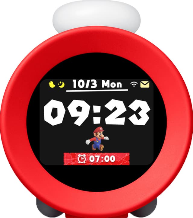 Med Nintendo Alarmo vekkerklokke kan du snooze eller stoppe morgenalarmen med en håndbevegelse, eller bare ved å stå opp. Se klokkeslett og dato på forsiden av vekkerklokken sammen med 35 forskjellige temaer fra fem Nintendo-spill: Super Mario Odyssey, The Legend of Zelda: Breath of the Wild, Splatoon 3, Pikmin 4 og Ring Fit Adventure.