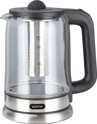 North vannkoker med teinfusjon 205111 har en kapasitet på 1,8 liter, automatisk avstengning, tørrkokingsbeskyttelse og en 360° trådløs base. Den er slitesterk og stilig og gjør det raskt og enkelt å brygge te eller koke vann.Les mer om produktet
