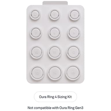 Med Oura Ring 4 størrelsessett kan du finne en størrelse som passer perfekt for deg. Settet består av størrelser fra 4 til 15, slik at du kan prøve og finne ut hvilken ringstørrelse som passer dine fingre. Hvert sett har en inkludert kupongkode.Les mer om produktet