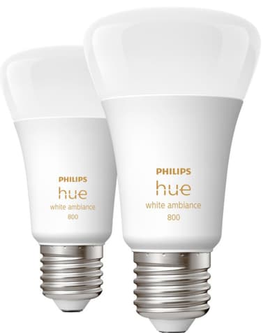 Philips Hue White Ambiance 9W A60 E27 gir deg det perfekte lysoppsettet for dine daglige aktiviteter. Juster lystonen fra varmt til kaldt hvitt lys og kontroller lysene enkelt via Hue Bluetooth-appen eller med Hue Bridge for enda flere funksjoner.Les mer om produktet
