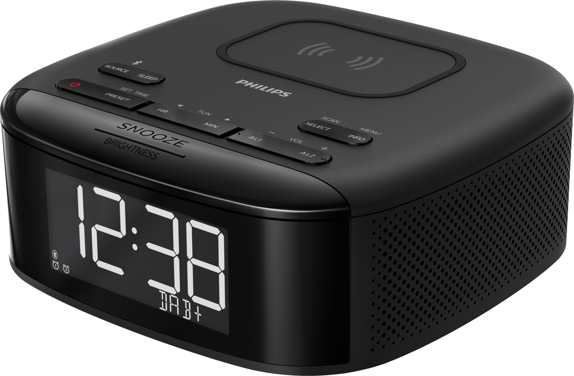 Philips klokkeradio gir deg digital radio i krystallklar kvalitet og lar deg spille av egne spillelister via Bluetooth, eller bruke integrert Qi-lading for å trådløst lade telefonen din.Les mer om produktet