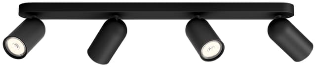 Philips Pongee spotlys har en elegant silhuett og er laget av metall. De er enkle å montere takket være ClickFix-systemet. Du monterer ganske enkelt braketten på taket eller veggen, kobler til ledningene og klikker deretter på armaturen. Denne Pongee-armaturen er sort og har fire justerbare spothoder. Det følger ikke med lyspære, så du kan fritt velge GU10-pæren med de lysegenskapene du foretrekker.