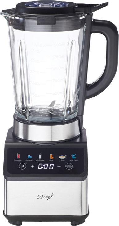 Sobczyk Digital blender CS1509 på 1200 W har en 1,5-liters glassmugge og seks hastigheter som kan knuse nøtter, frukt, grønnsaker og til og med is. Det digitale displayet lar deg se hastigheter og programmer som gjør det enkelt å tilberede måltider.Les mer om produktet