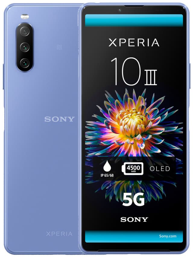 Sony Xperia 10 III - 5G smarttelefon kan skilte med IP65/68 vann- og støvtetthet, 5G-forbindelse, en lekker 6" LED touchskjerm og et 12+8+8 MP AI-trippelkamera. Batteriet på 4500 mAh med ulike strømstyringsmuligheter varer hele dagen.Les mer om produktet
