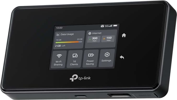 TP-Link M8550 5G mobilt bredbånd gir deg 3600 MB/s-hastigheter med WiFi 6E, med et innebygd 5G-modem, 1 GB/s WAN/LAN-port, 4680mAh-batteri, og et SD-spor for rask og praktisk tilkobling.Les mer om produktet