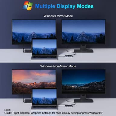 SpesifikasjonerModell: 1 til 4 USB-C DockingsstasjonPorter:2 × HDMI (støtter opptil 4K)1 × USB-C PD (max 100W)1 × USB-A 3.0 (5 Gbps)Inngang: 1 × USB-CDC/DC-effektivitet: opptil 96%Materiale: AluminiumFargevalg: Svart / Space GreyKompatibilitet: USB-C-enheter inkludert MacBook Pro/Air, Windows-laptops, iPad Pro 2025, Dell XPS 13/15, Surface Book 2, Asus ZenBook, Lenovo Yoga-serien, Samsung Galaxy S8/S9/S10, Chromecast med Google TV, Pixelbook, Chromebook og flerePlug-and-play: Ingen installasjon nødvendig, kompatibel med Windows, macOS, ChromeOSStørrelse: 58 × 51 × 11 mm (L×B×H)Vekt: 42 gSkjermoppløsninger og oppdateringsfrekvenserWindows:DP1.2 (uten DSC) → 4K@30Hz + 4K@30HzDP1.4 (med DSC) → 4K@60Hz + 4K@60HzDP1.4 (uten DSC) → 4K@60Hz + 4K@30HzMacOS:4K@60Hz + 4K@60HzMerk: MacOS støtter ikke MST, noe som begrenser extended/utvidet modus. Samme bilde vises på begge skjermer.FunksjonerDobbelt HDMI: Koble til to eksterne skjermer for en krystallklar og smidig multi-display-opplevelse.USB-C PD 100W: Rask lading med opptil 50% på 30 minutter.USB-A 3.0 med 5 Gbps: Rask filoverføring fra eksterne harddisker, flash-enheter eller annet tilbehør.Kompakt og bærbar design: Lett og robust aluminiumskonstruksjon, perfekt for hjemmekontor og arbeid på farten.Plug-and-play: Enkel å bruke uten drivere eller komplisert installasjon.Innhold1 × NÖRDIC 1 til 4 USB-C Dockingsstasjon