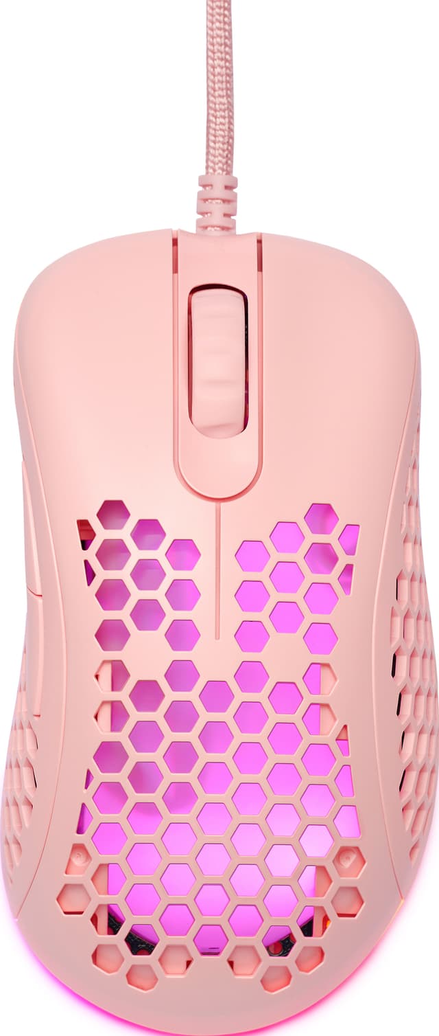 Den lettvektige gamingmusen veier kun 65 g og har et skall med bikakestruktur slik at den beveger seg med dødelig hastighet, samtidig som at hendene dine ikke blir svette uansett hvor opphetet gamingen blir. Den har også knapper for å justere DPI og USB Polling Rate.