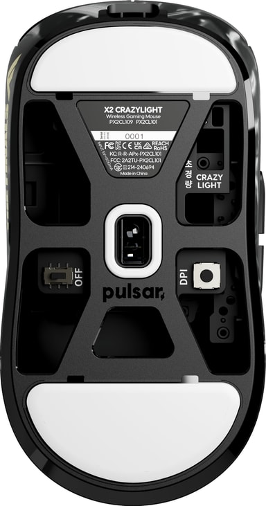 Pulsar X2 Crazylight Medium trådløs mus tilbyr et lettvektig design med justerbar DPI på opptil 32 000 DPI, 8K pollingfrekvens, varige optiske brytere, og en Pulsar XS-1 Sensor for høy presisjon og presise musebevegelser.Les mer om produktet