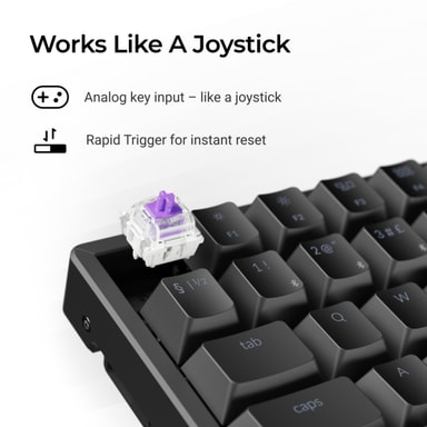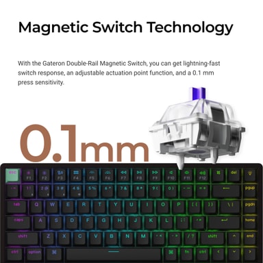 Keychron K2 HE trådløst tastatur forener Gateron 2.0 Purple Magnetic-brytere med et 75%-oppsett, med trippel-modus tilkobling, justerbar aktivering, og levende RGB-belysning for en strålende taste- og gamingopplevelse.Les mer om produktet