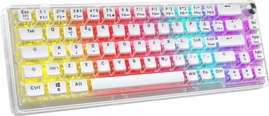 Det slående gjennomsiktige utseendet med hvite topper på tastene forsterkes av den brilljerende RGB-belysningen som du kan tilpasse etter eget ønske. Få et nytt, dristig utseende på skrivebordet ditt.