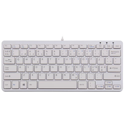 Ergo kompakt tastatur er et kompakt, ergonomisk tastatur. Dette sikrer at hendene alltid holder seg innenfor skulderbredde når du bruker tastaturet og musen samtidig. Dette igjen sikrer at skulder og albue havner i en naturlig avslappet stilling som bidrar til å forhindre belastningsskader.