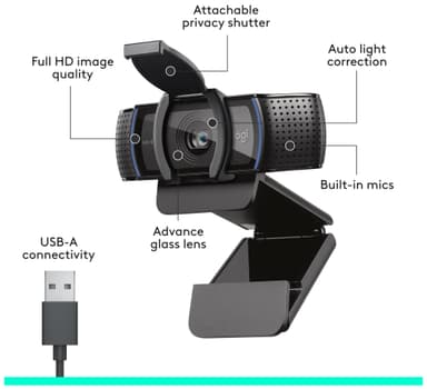 Dette enkle men effektive Logitech C920s Pro HD webkameraet er alt du trenger for dine bedrifts- og hverdagssamtaler. Kameraet er utstyrt med et objektiv som har HD autofokus og lyskorrigeringsteknologi, og leverer bilder i konstant høy kvalitet.Les mer om produktet