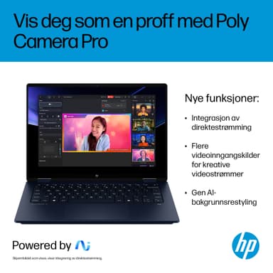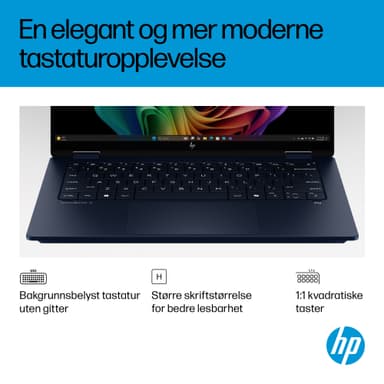 Ta kreativiteten med deg hvor som helst med den tynne og lette HP OmniBook X Flip 14 Next Gen AI-PC. Flere bruksmoduser gjør det enkelt å jobbe og underholde seg fra alle vinkler, mens en 2.8K OLED-skjerm gir liv til innholdet med levende farger og rike detaljer. En AI-drevet prosessor og et heldagsbatteri med hurtiglading sørger for at du alltid har hastigheten, ytelsen og utholdenheten du trenger for å skape – uansett hvor du er.