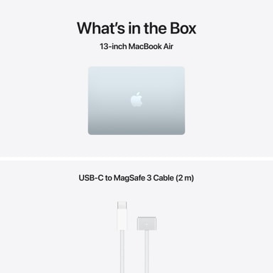 LADERE – Vær oppmerksom på følgende: 15-tommers MacBook Air leveres med en USB-C-til-MagSafe 3-ladekabel, men lader følger ikke med. En USB-C-lader eller andre USB-hurtigladere som kan yte 35 watt eller høyere, kreves for å lade denne enheten. For optimal lading anbefaler Apple å sammenkoble denne Macen med en 35-watts USB-C-lader med to porte fra Apple eller 70-watts USB-C-laderen for å dra nytte av hurtigladingen (lading opptil 50 prosent på 35 minutter).7