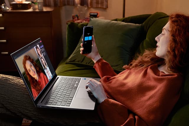 Galaxy Book4 er lett og slank i formen for å enkelt passe i ryggsekken eller vesken. Med sin store 15,6"-skjerm kan du nyte fagerrike og skarpe bilder når du ser på dine favorittserier.