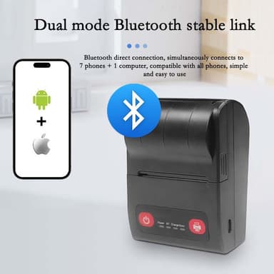 Trådløs Bluetooth-utskrift: Eliminer bryet med kabler med den integrerte Bluetooth-tilkoblingen. Denne 58mm termiske skriveren kobles sømløst til smarttelefonen, nettbrettet eller datamaskinen din, slik at du kan skrive ut trådløst fra hvor som helst innenfor rekkevidde. Ideell for utskrift av kvitteringer, fakturaer, ordrebekreftelser og etiketter direkte fra mobilenheten din. Bluetooth-tilkoblingen er stabil og pålitelig, og sikrer jevn ytelse. Kompatibel med et bredt spekter av enheter, inkludert de som kjører Android, iOS og Windows. Nyt bekvemmeligheten av trådløs utskrift og strømlinjeform arbeidsflyten din med denne allsidige Bluetooth termiske skriveren. USB-tilkoblingen tilbyr et alternativ for enheter uten Bluetooth.