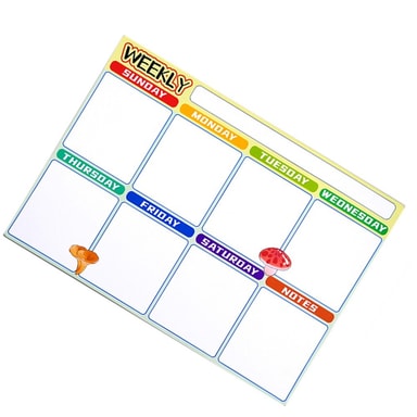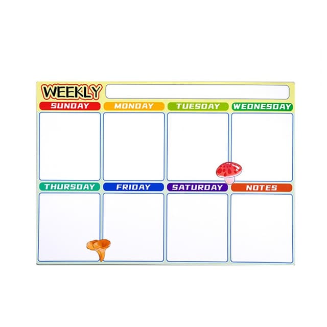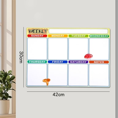Magnetisk kjøleskapsmagnet ukeplanlegger for organisering av hverdagen. Gjenbrukbar, vanntett og enkel å feste. Perfekt for planlegging av måltider, studier og avtaler. Størrelse: 42x30cm.Les mer om produktet