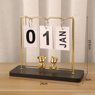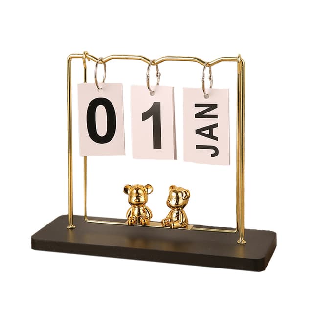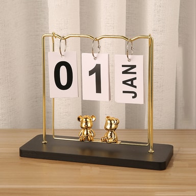 Manuell kalender: Denne ornamenten har en unik manuell blakalender som lar deg endre datoen interaktivt. Bladsiden gir et kreativt og lekent element til din daglige rutine. Denne evighetskalenderen er perfekt for de som setter pris på praktisk engasjement, og eliminerer behovet for tradisjonelle papirkalendere. Nyt den taktile opplevelsen av å oppdatere datoen samtidig som den gir et snev av fantasi til skrivebordet eller hyllen din.