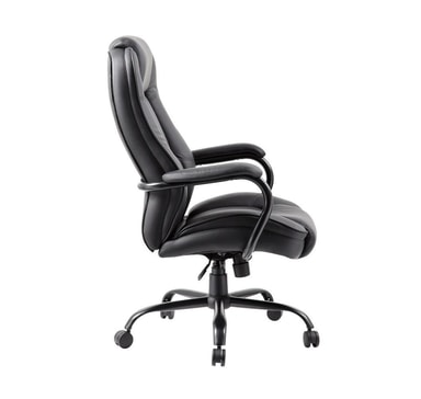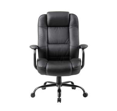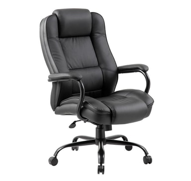 Arbeidsstol ELEGANT XXL svart. Stolen er dekket med svart imitert skinn. Rammen er svart. Stolen har sommerfuglmekanisme, justerbar tiltspenning og tiltlåskontroll. Pneumatisk setehøydejustering. Armlenene er laget av stål, trukket og dekket med imitert skinn. Basen er laget av sort stål, R37cm. Stolen har nylonhjul, pinne: 11mm. Høyde 113-120,5cm. Dimensjonene på produktet er 79,5x82xH113-120,5cm. Vektkapasiteten er 150 kg.