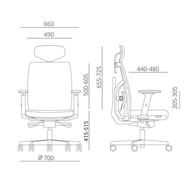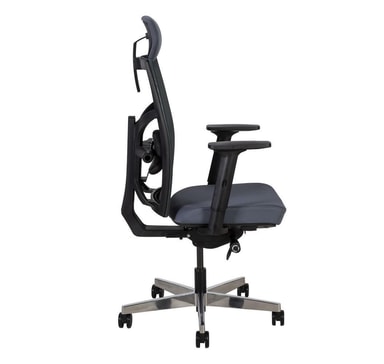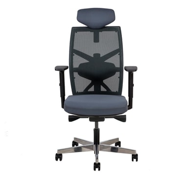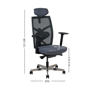Arbeidsstol TUNE grå. Stolen er dekket med polyesterstoff, 50 000 Martindale's. Ryggstøtten er dekket med polyesternettstoff. Svart plast ytre skall. Stolen har synkronisert mekanisme, automatisk tiltspenningskontroll og tiltlåskontroll. Pneumatisk setehøydejustering. Rygg høydejustering 50-60,5cm. Justerbar korsryggstøtte. Justerbar setedybde 44-48cm. Armlenene er laget av sort plast. Dybden og vinkelen på armlenene er justerbare. Høyden på armlenene kan justeres 20,5-30,5 cm. Fritt tiltbar hodestøtte 30°, justerbar høyde. 5-grenet aluminiumsfot, D70cm. Stolen har automatiske bremsehjul, 65mm. Høyde 111-128cm, setehøyde 45,5-55,5cm, setedybde 44-48cm, setebredde 49cm. Dimensjonene på produktet er 70x70xH111-128cm. Vektkapasiteten er 120 kg.