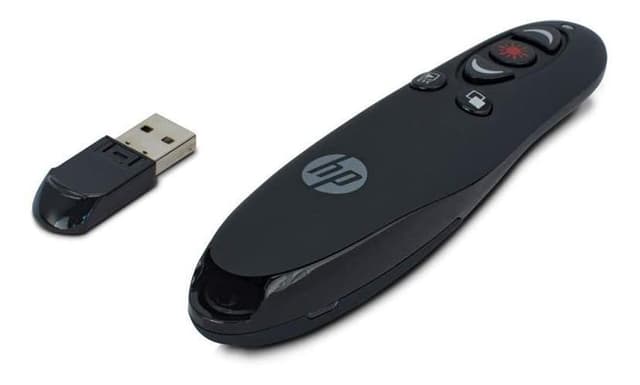 HP trådløs presentasjonskontroll med laserpeker, 5 knapper, oppladbart litiumbatteri, svart